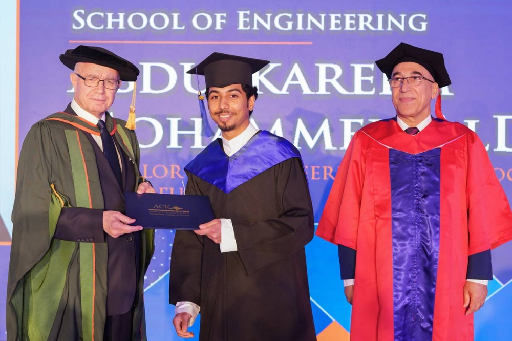 احتفلت الجامعة الأسترالية في الكويت بتخريج كوكبة جديدة لعام 2022 من الطلبة المتميزين من مرحلتي الدبلوم والبكالوريوس، بحضور رئيس مجلس أمناء الجامعة د. سعد العمري، والقائمة بأعمال السفير الاسترالي ميليسا كيلي، ورئيس الجامعة د. عصام زعبلاوي، والخريجين وأهاليهم.