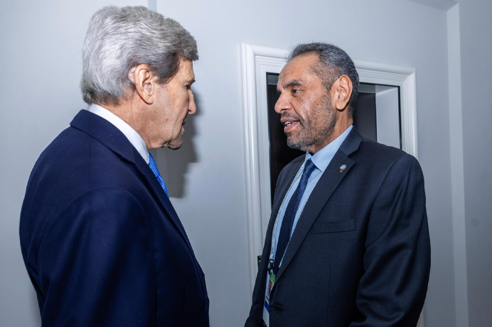 والتقى وزير الخارجية المبعوث الأميركي الخاص لشؤون المناخ جون كيري، وجرى خلال اللقاء استعراض سبل تعزيز العلاقات بين البلدين، وأبرز القضايا الإقليمية والدولية المطروحة على جدول أعمال المؤتمر.