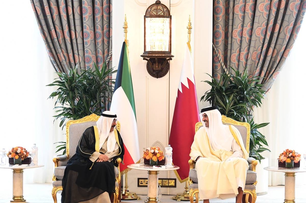 حيث عُقدت جلسة المباحثات الرسمية في الديوان الأميري بين حضرة صاحب السمو الشيخ مشعل الأحمد الجابر الصباح أمير دولة الكويت وأخيه حضرة صاحب السمو الشيخ تميم بن حمد آل ثاني أمير دولة قطر - حفظهما الله ورعاهما، استعرضا خلالها العلاقات الثنائية بين البلدين الشقيقين، وسبُل تطويرها في المجالات كافة، مستذكرين الدور المهم والبناء الذي بذله سمو أمير البلاد الراحل الشيخ نواف الأحمد الجابر الصباح - طيب الله ثراه - وجهوده في هذا المجال.