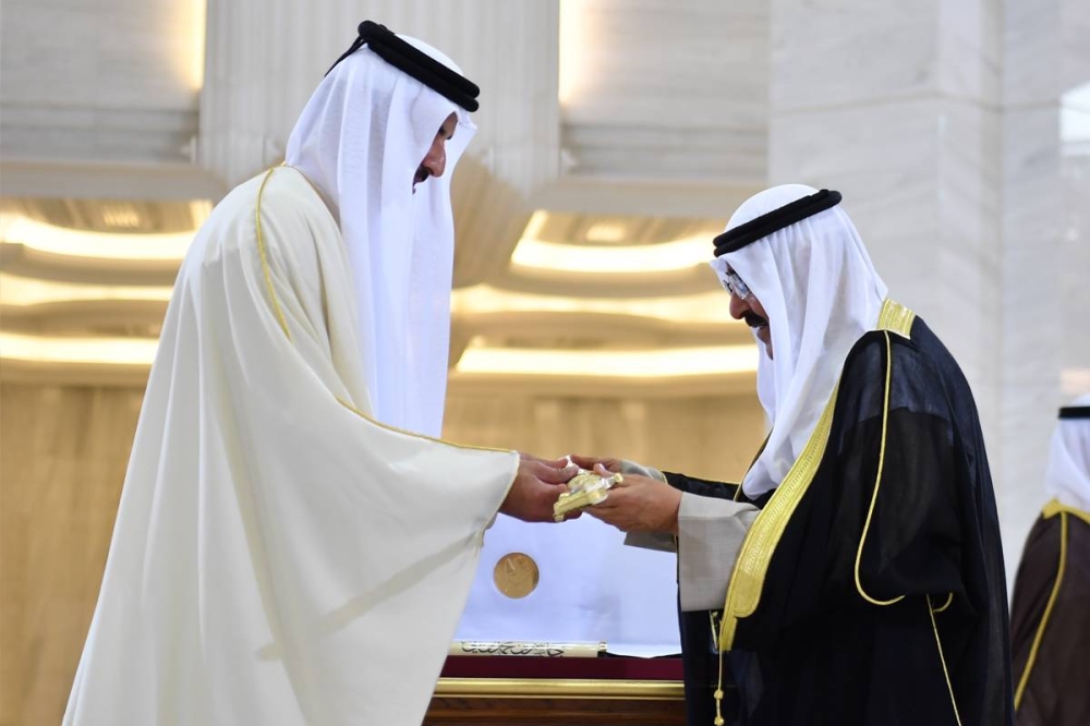 تعبيراً عن مشاعر الأخوة والمودة التي يكنّها أمير قطر للقيادة الكويتية، أهدى سموه إلى صاحب السمو أمير البلاد الشيخ مشعل الأحمد أرفع الأوسمة القطرية «سيف المؤسس الشيخ جاسم بن محمد بن ثاني»، تقديراً لمنزلته العالية، وتوثيقاً لعرى الأخوة بين الشعبين الشقيقين.