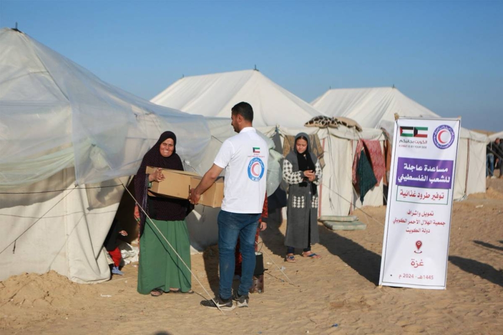 أعلنت جمعية الهلال الأحمر الكويتية، اليوم، إطلاق حملة توزيع 15 ألف طرد غذائي ومواد صحية على الأسر النازحة في غزة.
