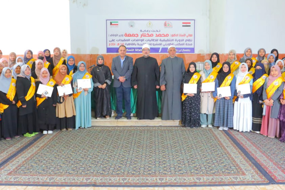 أقام المكتب الكويتي للمشروعات الخيرية بالقاهرة اليوم الجمعة احتفالية لتكريم الطالبات الدارسات بالأزهر الشريف على منحة بيت الزكاة الكويتي وذلك في ختام فعاليات دورة تثقيفية بمدينة الإسكندرية تحت رعاية وزير الأوقاف المصري الدكتور محمد جمعة وحضور سفير دولة الكويت لدى مصر غانم الغانم.