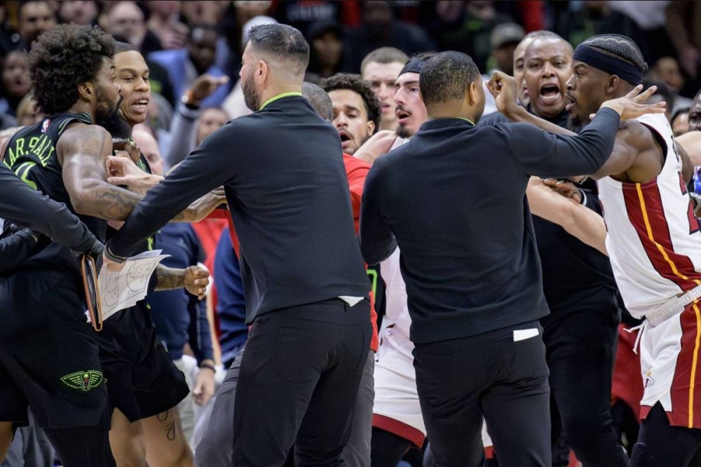 أوقفت رابطة دوري كرة السلة الأميركي للمحترفين 5 لاعبين، بسبب دورهم في مشاجرة في الملعب خلال مباراة بين ميامي هيت ومضيفه نيو أورليانز بيليكانز أبرزهم قائد الأول جيمي باتلر.