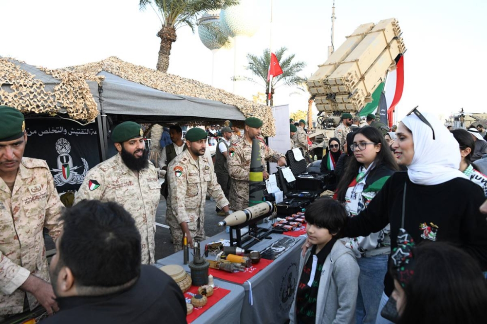 وبالتزامن، شهد المعرض الذي أقامته وزارة الدفاع في منطقة الابراج إقبالاً كبيراً من المواطنين الذين اطلعوا على كثير من نماذج الأسلحة العسكرية من المدفعيات والراجمات وقاذفات الصواريخ والدبابات، إضافة الى بعض الاعتدة والمعدات التي تعود الى فترة الغزو العراقي الغاشم، وقد تولى العسكريون المشاركون تقديم شروحات للزوار عن تلك المعروضات العسكرية.