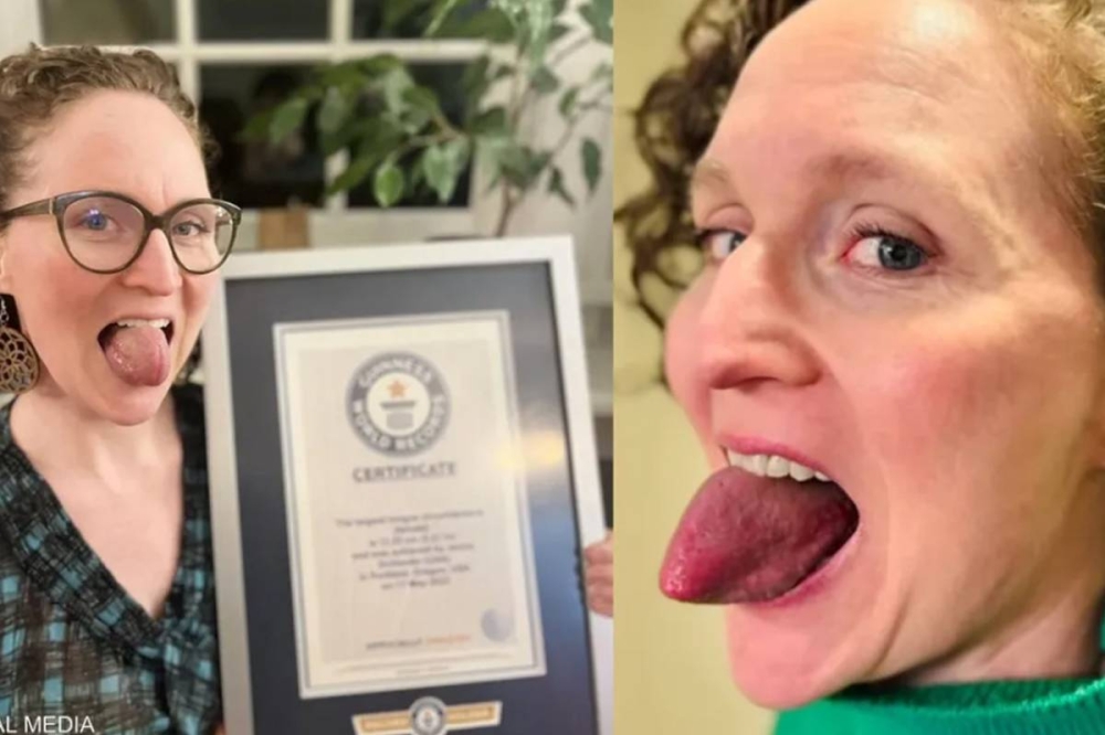 دخلت امرأة من ولاية أوريغون الأميركية موسوعة غينيس للأرقام القياسية بسبب حجم لسانها غير المعتاد، الذي بلغ محيطه 13 سنتيمتراً.
