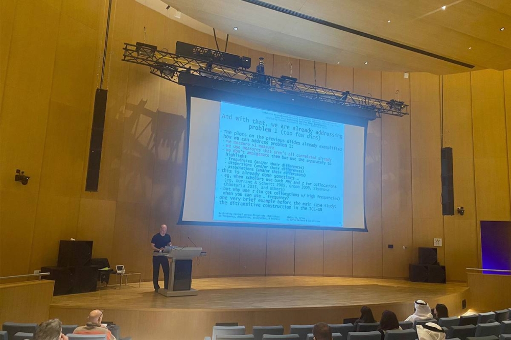 نظم قسم اللغة الانكليزية وآدابها في كلية الاداب بجامعة الكويت، صباح اليوم، مؤتمر «الاتجاهات الحالية في البحث اللغوي: وجهات نظر المتن والذكاء الاصطناعي» بمشاركة العديد من الدول والاساتذة في مركز المؤتمرات بالحرم الجامعي بمدينة صباح السالم الجامعية.