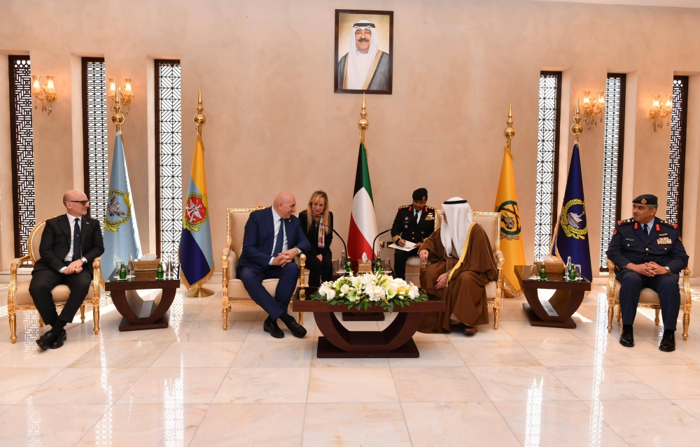 حضر اللقاء رئيس الأركان العامة للجيش الفريق الركن طيار بندر المزين، ووكيل وزارة الدفاع الشيخ الدكتور عبدالله المشعل، والوزير المفوض بإدارة أوروبا بوزارة الخارجية يوسف التنيب، والسفير الإيطالي لدى البلاد لورنزو موريني، وعدد من كبار الضباط في كلا الجانبين.
