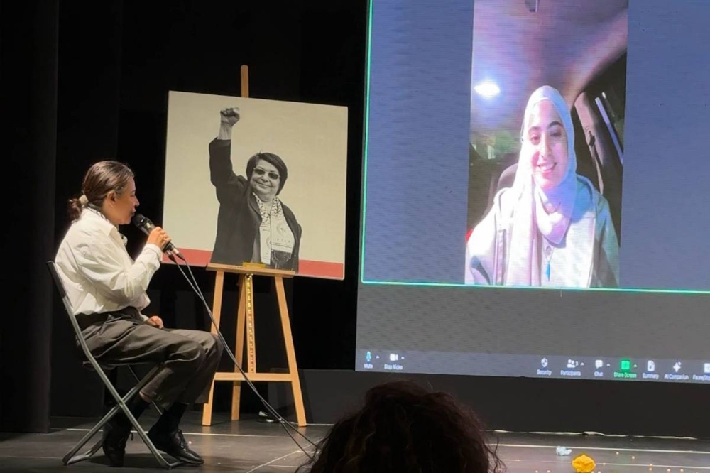 وتحدثت ضيفة الندوة، عبر برنامج زوم المناضلة، منى الكرد، عن واقع الشعب الفلسطيني وحياته، وبالأخص في قطاع غزة وحي الشيخ جراح، وعمليات التهجير القسرية من قبل جيش الاحتلال الإسرائيلي. واختتمت الندوة بعبارات عن الأمل والتفاؤل بتحرير فلسطين قريبا، نتيجة الحراك العالمي الذي تتبناه شعوب العالم ضد ما يفعله جيش الاحتلال من جرائم قتل وإبادة جماعية وتهجير لسكان فلسطين الأصليين. وأقيم على هامش الندوة معرض صور ولوحات للمناضلات الفلسطينيات المكرمات.