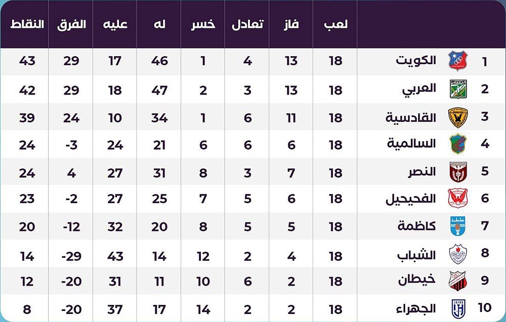 تحقيق الأهمالسالمية والنصر والفحيحيل بالأمان... وكاظمة سقط إلى مجموعة الهبوط