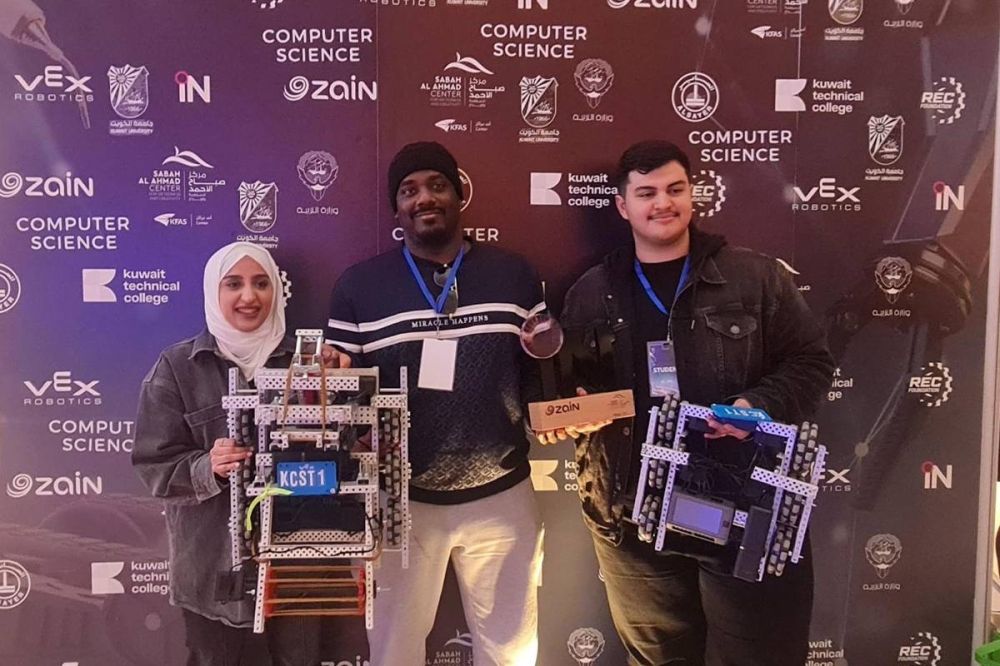 فاز فريق كلية الكويت للعلوم والتكنولوجيا (KCST) بجائزة وطن الابتكار، وهي الجائزة الرئيسية في مسابقة الكويت الوطنية للروبوتات، والتي نظمت من قبل جامعة الكويت ومركز صباح الأحمد للموهبة والإبداع وشركة زين، في إطار جهودها المستمرة لتعزيز الإبداع والابتكار في مجال تصميم وصناعة الروبوت تحت مظلة وطن الابتكار.