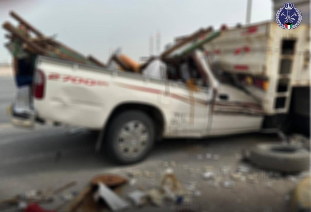 تعاملت فرق الإطفاء ظهر اليوم الإثنين مع حادث تصادم بين مركبة وشاحنة على طريق الصبية السريع.