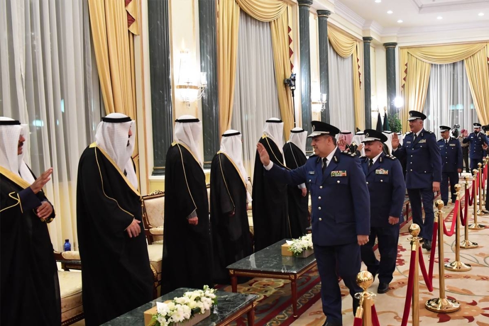 حشود دبلوماسية وعسكرية وجموع من المواطنين والمقيمين قدموا التهنئة لسموه وأبناء الأسرة