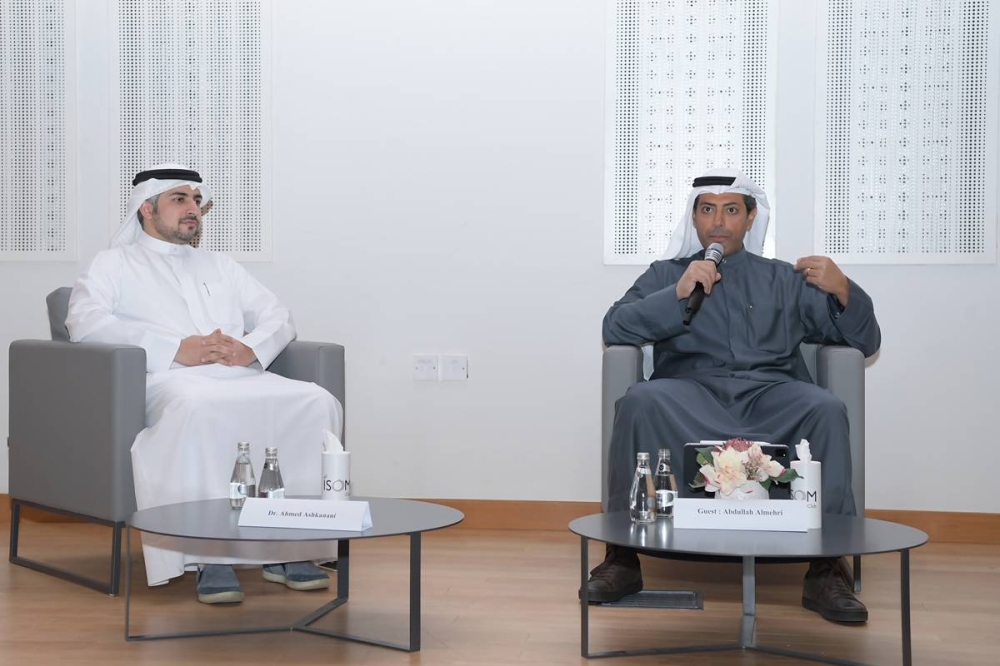 جاء ذلك خلال محاضرة المحري في مقر كلية العلوم الإدارية – جامعة الكويت تحت عنوان «Prisoners of the Comfort Zone» بحضور طلبة الكلية وعدد من الأساتذة، لمشاركة خبراته الواسعة الممتدة إلى سنوات عديدة في القطاع المصرفي، ومُقدماً لهم النصائح حول كيفية تطوير مهاراتهم قبل الالتحاق بسوق العمل، بما يتماشى مع متطلبات الفترة الحالية للانطلاق نحو مستقبل أكثر تأثيراً ونجاحاً، بالإضافة إلى الإجابات عن جميع استفساراتكم.
