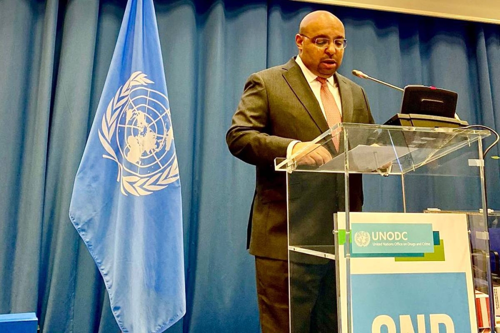 وشدد على ضرورة الالتزام الكامل بمضمون الاتفاقيات الدولية الثلاث للمخدرات باعتبارها حجر الزاوية في التصدي لمشكلة المخدرات العالمية.