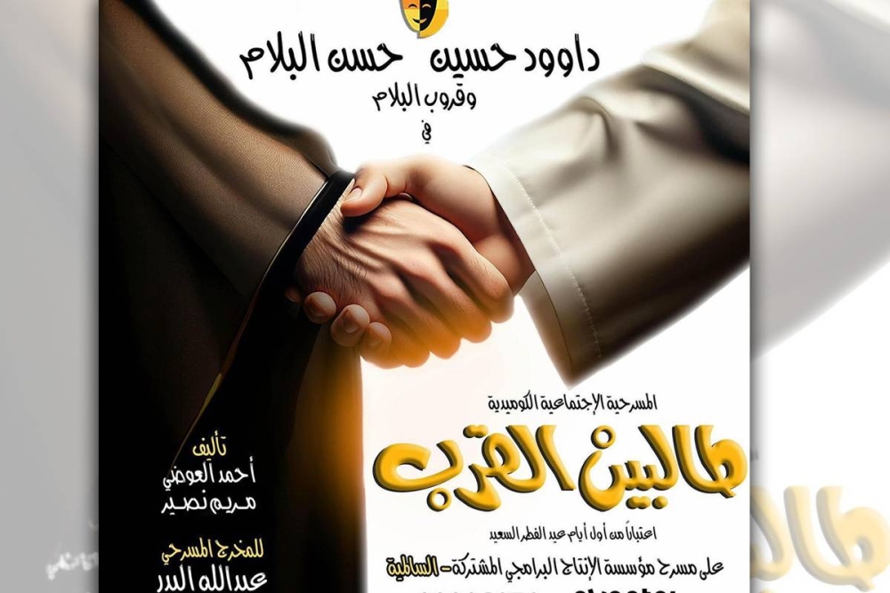 كشف نجوم العمل الكوميدي المرتقب، الذي يشهد عودة التعاون بين نجمي الكوميديا حسن البلام وداوود حسين، عن تفاصيل العمل الذي يجمعهما، والمقرر عرضه في عيد الفطر المقبل، وسط استعدادات كبيرة لظهورهما متجاورين على خشبة المسرح الكويتي، وهو المشهد الذي انتظره الجمهور منذ عدم ظهورهما في أي عمل مسرحي أو تلفزيوني لمدة 20 عاماً.ونشر الحساب الرسمي للفنانين حسن البلام وداوود حسين والمخرج عبدالله البدر الملصق الرسمي الأول للعمل، الذي يكشف عن الكثير من التفاصيل، فالمسرحية اجتماعية كوميدية بعنوان «طالبين القرب» على مسرح مؤسسة الإنتاج البرامجي المشتركة بالسالمية، انطلاقا من أول أيام العيد، حيث تم فتح باب الحجز عبر موقع ايفنتات لحجز المقاعد.