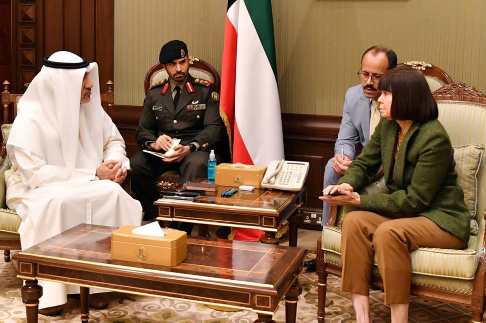 بحث نائب رئيس مجلس الوزراء وزير الدفاع وزير الداخلية بالوكالة الشيخ فهد اليوسف في قصر بيان اليوم، مع سفيرة الولايات المتحدة الأميركية لدى البلاد كارين ساساهارا العديد من الموضوعات والقضايا ذات الاهتمام المشترك.