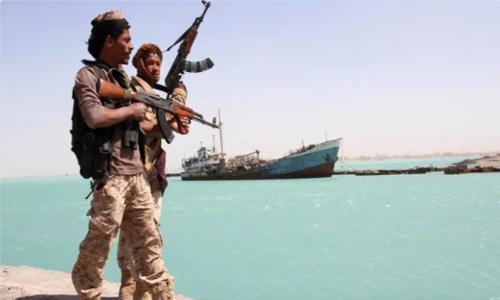 وذكرت هيئة عمليات التجارة البحرية البريطانية أنها تلقت بلاغاً عن تبادل لإطلاق النار بين سفينة وقارب صغير اقترب منها على بعد 102 ميل بحري جنوب شرقي ميناء نشطون اليمني.