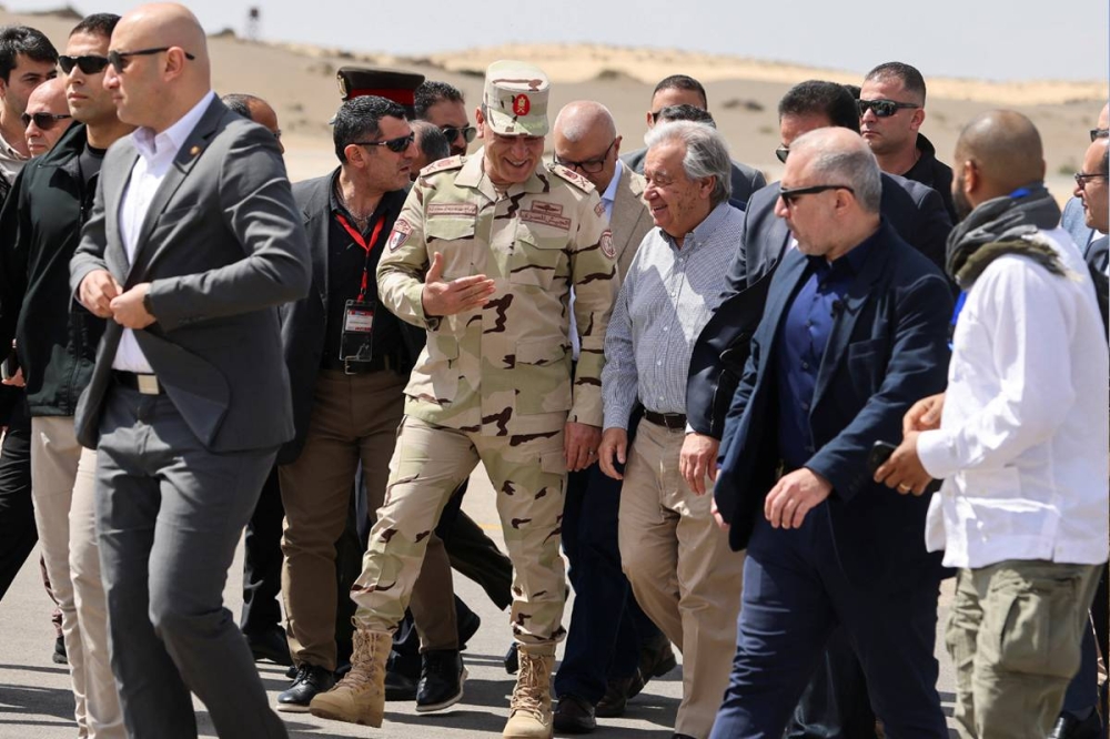وفي مدينة العريش، شمال سيناء، التقى غوتيريش موظفي الإغاثة التابعين للأمم المتحدة في رفح، وتفقد عملية تسليم وتخزين الكثير من مساعدات الإغاثة الدولية لغزة، ومستشفى تعالج المصابين بالحرب.