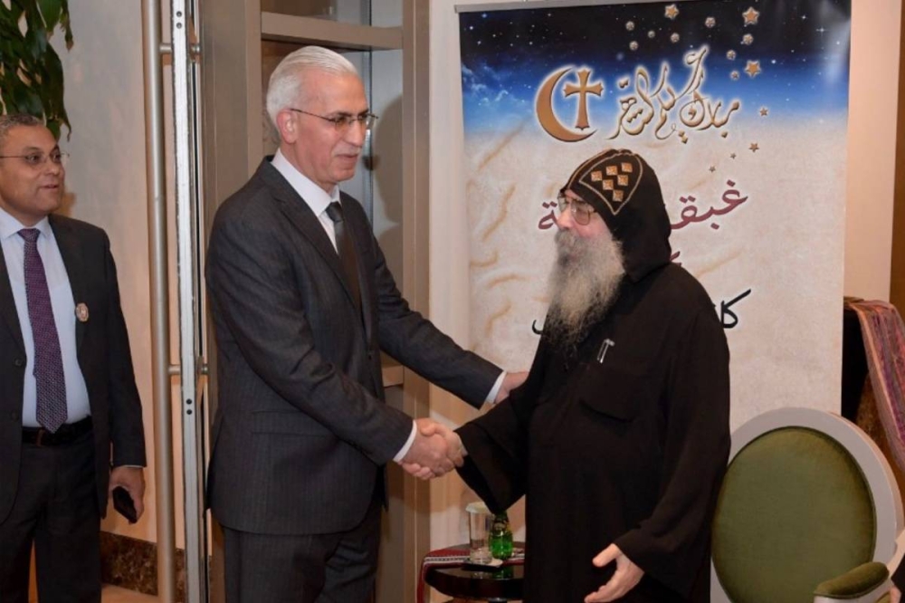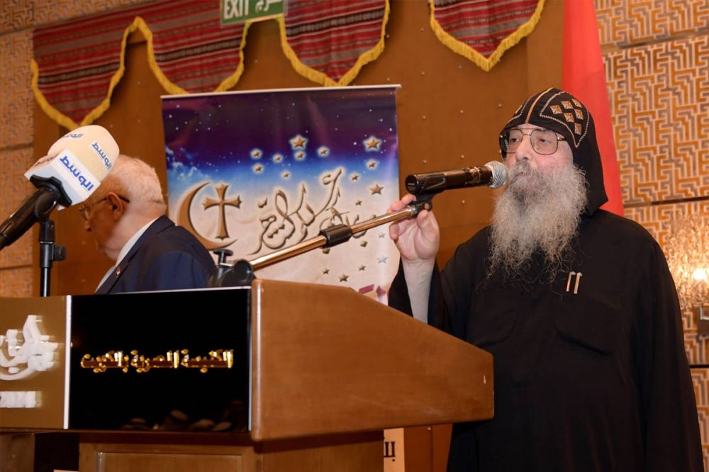 كما توجه بالشكر إلى الكنيسة القبطية المصرية، لجهودها الملموسة لتعزيز مكانة مصر ودورها في الكويت، خاصة في هذا الشهر الكريم، وشدد على خالص تقديره واعتزازه بأبناء الجالية المصرية على أرض الكويت، لدورهم في التنمية ولأدائهم المتميز نحو الوطن الأم، حتى تظل مصر بوحدتها الوطنية نموذجا فريدا لكل الشعوب.