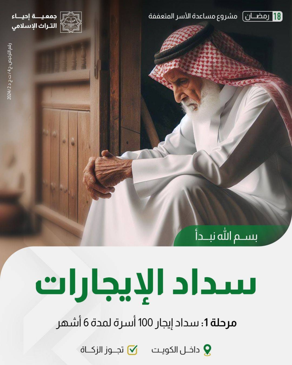 طرحت جمعية إحياء التراث مبادرتها الإنسانية الخيرية وفزعتها الكويتية لتقديم المساعدة للأسر المحتاجة في الكويت والتي تعاني مشكلة في سداد الإيجارات المتأخرة بسبب ضعف الدخل، ضمن مشروعها الخيري «مساعدة الأسر المتعففة»، الذي تسعى من خلاله لتوطين العمل الخيري ودعمه لتلبية الاحتياجات داخل الكويت، وهي أولى من خارجها.