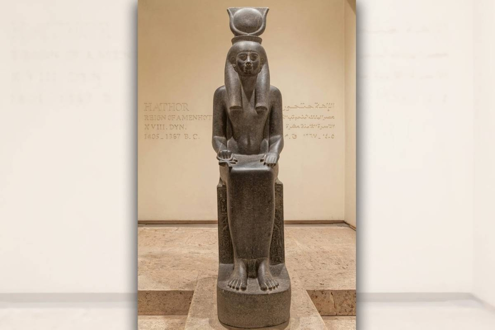 ويعتقد الباحثون أن هذه القطعة تجسِّد تمثالاً أكبر للإلهة حتحور، ابنة إله الشمس المصري رع، ووالدة حورس، وهو إله برأس صقر في الأساطير المصرية، في مصر القديمة.