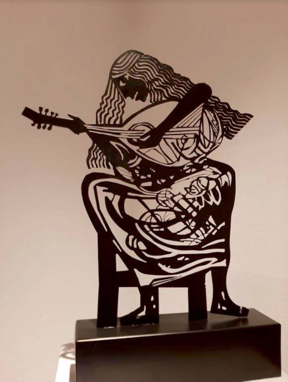 ويستدعي الفنان صوت العود الساحر في تصويره لحالات متنوعة من التماهي، ومن الامتزاج التي يلتحم فيها العازف بالعود يحتضنه كرفيق دائم في الحياة.