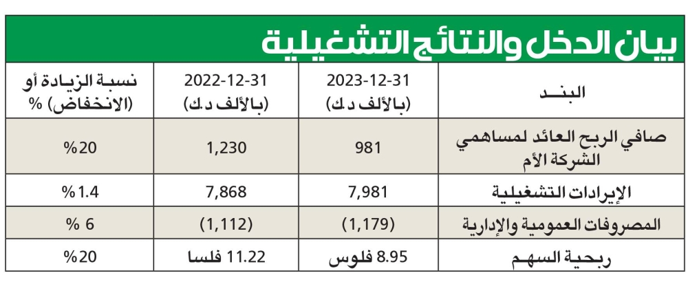 جاء ذلك خلال اجتماع الجمعية العامة العادية للسنة المالية المنتهية في 31 ديسمبر 2023، التي عقدت أمس بنسبة حضور بلغت 55.574 في المئة، ووافقت على جميع البنود الواردة على جدول أعمالها ومنها توزيع 8 في المئة نقداً، أي 8 فلوس لكل سهم عن عام 2023. وأكد أن الإنجازات التي تحققت خلال عام 2023 تعكس مدى إصرار الشركة في المحافظة على ريادتها في مجال صناعة الترفيه العائلي الآمن في الصالات المغلقة، حيث استطاعت الشركة أن تحقق نتائج طيبة، والتي ظهرت جلياً خلال نتائج أعمال السنة المالية المنتهية في 31 ديسمبر 2023. وتأكيداً على حفاظ الشركة على نتائج ربحيتها عام 2023 مقارنة بعام 2022، يجدر الإشارة إلى الآتي:-