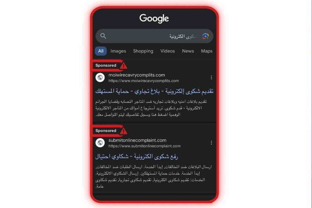 ودعت الإدارة إلى تجنب زيارة أي رابط إلكتروني تجده عبر محركات البحث ويدّعي استقبال شكاوى إلكترونية باسم أي من الجهات الحكومية وخصوصاً الروابط المروجة «Sponsored».