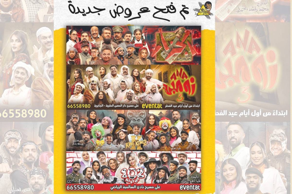 أعلن الفنان محمد الحملي فتح عروض جديدة لمسرحياته الأربع، عبر حسابه في إنستغرام، والمسرحيات هي التي انطلقت عروضها في موسم عيد الفطر وهي: «الجزار» و«102» و«كينغ كونغ» و«أنا زومبي 3».