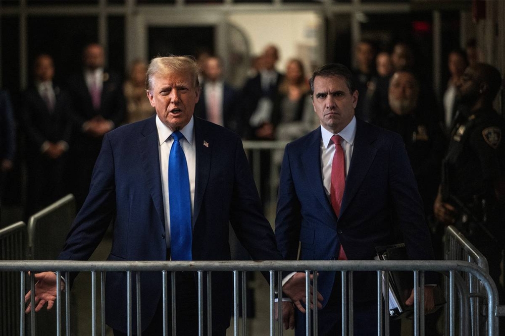 لكن ترامب سعى لاستغلال التغطية الإعلامية المكثّفة لمحاكمته لحشد قاعدته الشعبية عبر إدلائه بتصريحات على نحو منتظم من أمام مقر المحكمة.