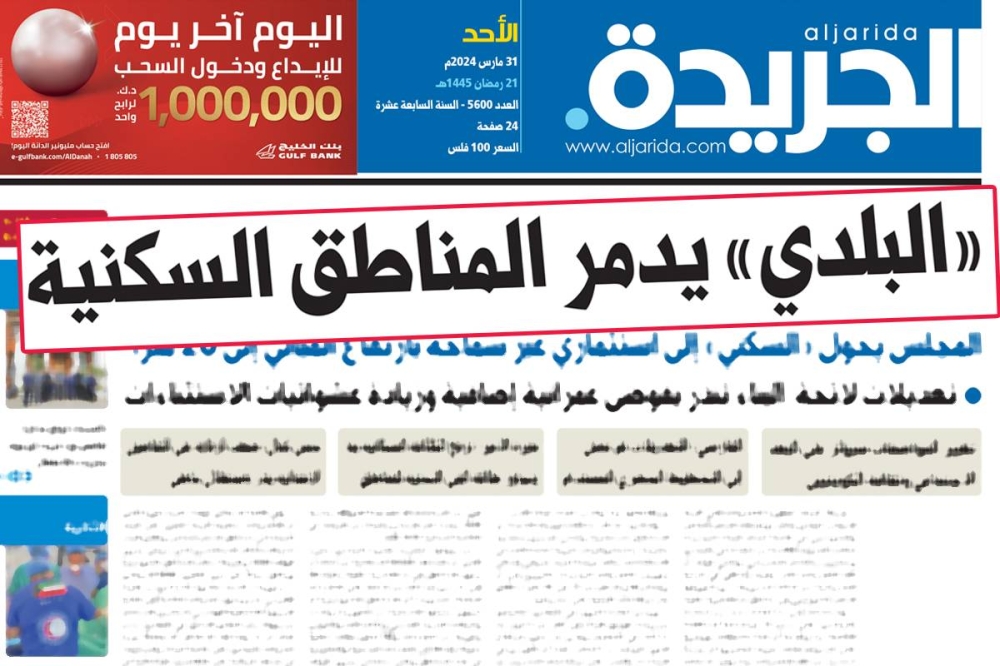 وكانت «الجريدة» حذرت في 31 مارس الماضي من خطورة التعديلات التي أقرها «البلدي» بشأن مواصفات السكن الخاص والنموذجي في لائحة أعمال البناء الجديدة، مؤكدة أن تلك التعديلات تنذر بعبث إضافي في البنية العمرانية من شأنه تدميرها، مع تحويلها السكن النموذجي إلى مناطق استثمارية خفية.