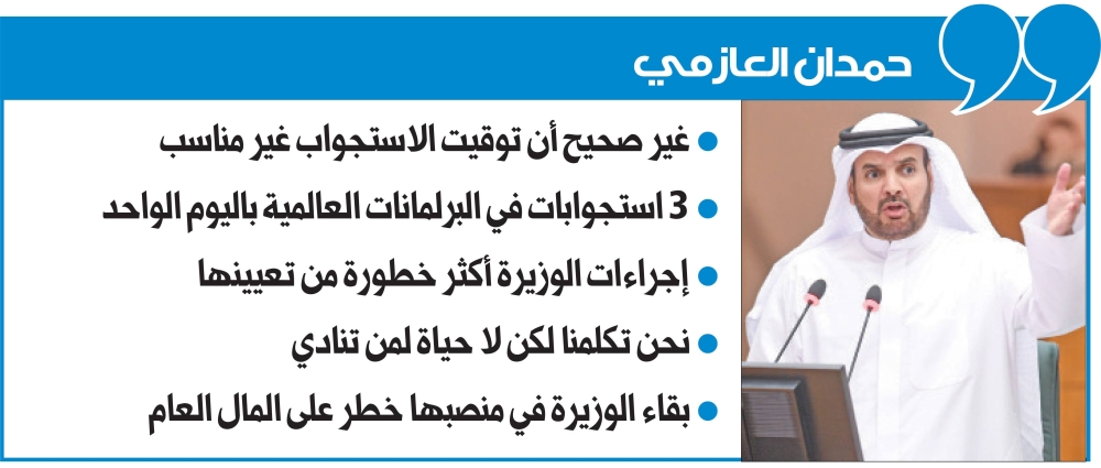 • اكتفى بمناقشة استجواب العازمي لها دون الوصول إلى مرحلة طرح الثقة