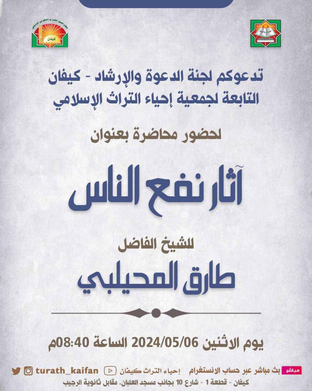 تنظم جمعية إحياء التراث الإسلامي سلسلة دروس علمية وثقافية ودينية.