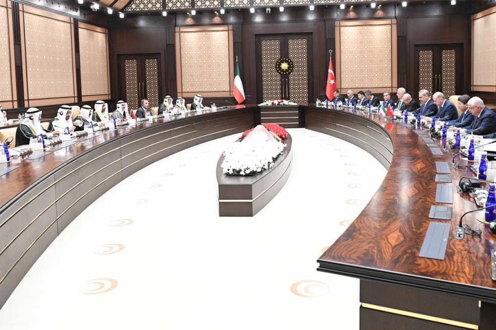 كما عقدت في القصر الرئاسي بالعاصمة التركية أنقرة، عصر أمس، جلسة المباحثات الرسمية بين الكويت وجمهورية تركيا الصديقة، ترأس فيها صاحب السمو أمير البلاد الجانب الكويتي، فيما ترأس الرئيس أردوغان الجانب التركي.