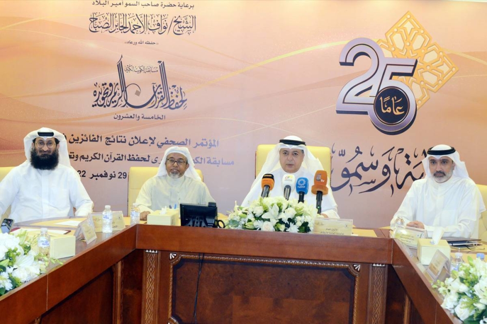 أعلنت الامانة العامة للأوقاف، النتائج النهائية لمسابقة الكويت الكبرى لحفظ القرآن الكريم وتجويده الخامسة والعشرين تحت شعار «25 عاماً رعاية وسموّ» وبرعاية سمو أمير البلاد الشيخ نواف الأحمد، فاز فيها 232 فائزاً وفائزة من 45 جهة رسمية وخيرية بمشاركة 2222 متسابقاً ومتسابقة، في حين بلغ عدد الفائزين من فئات ذوي الاحتياجات الخاصة 20 فائزاً وفائزة، وبلغ عدد الفائزين من المؤسسات الإصلاحية والأحداث 22 فائزاً وفائزة.