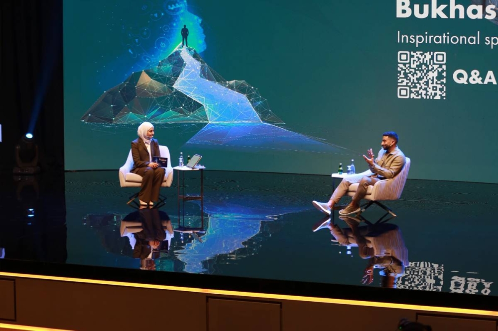 بدأ بوخش الندوة بسرد قصته منذ البداية ليستطيع الحاضرون فهم مراحل صعوده سلم النجاح في مجال ريادة الأعمال والعقبات والتحديات التي واجهته وكيف استطاع أن يتخطاها.