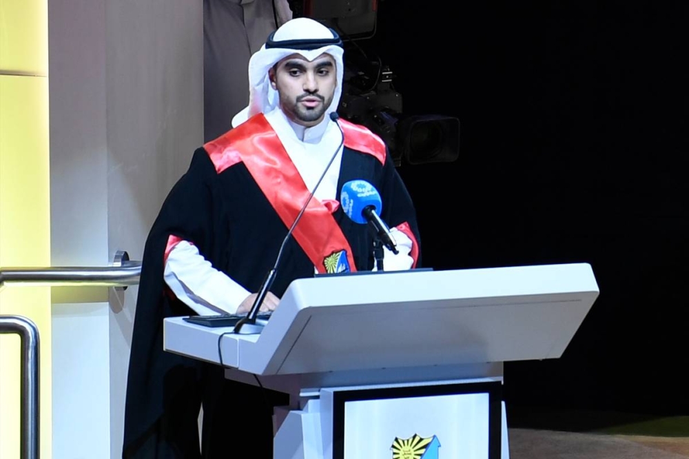 ودعا الخريجين أن «يضعوا مصلحة الوطن نصب أعينهم فإن الكويت، وهي تواصل سباق التنمية وتمضي نحو إدراك التقدم وبناء اقتصاد قائم على المعرفة لتعتمد كثيرا على الفائقين، فهم ثروة الوطن والاستثمار الحقيقي له».