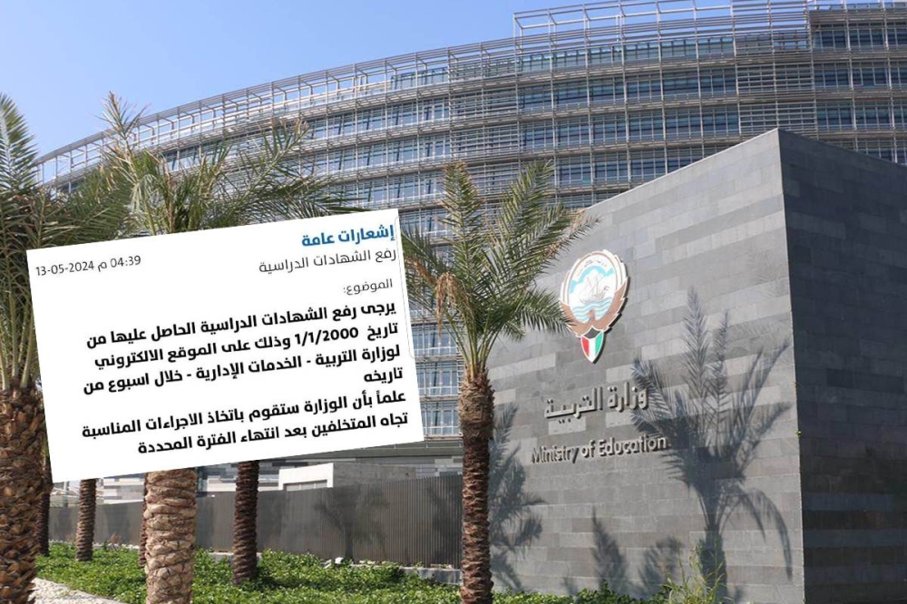 وحذرت «التربية» من لا يستجيب لهذا التنبيه برفع صورة من المؤهل الدراسي خلال أسبوع باتخاذ الاجراءات المناسبة.