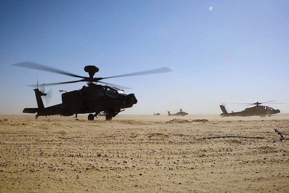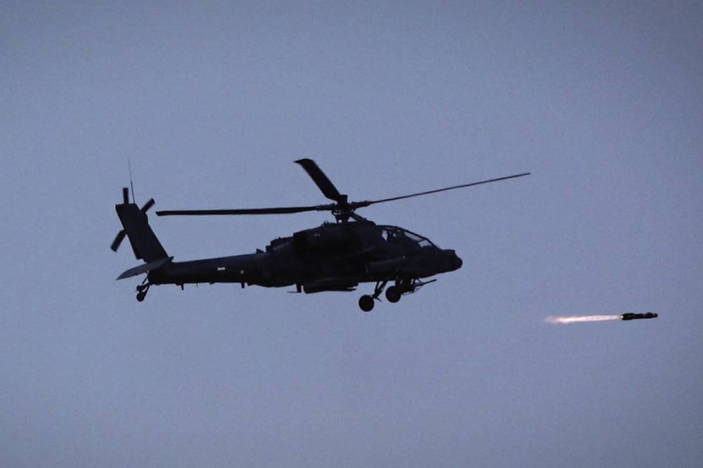 رماية تدريب لطائرات الأباتشي بالذخيرة الحية