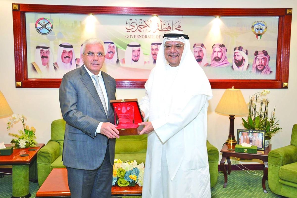 محافظ الأحمدي بحث تعزيز العلاقات مع سفير فلسطين