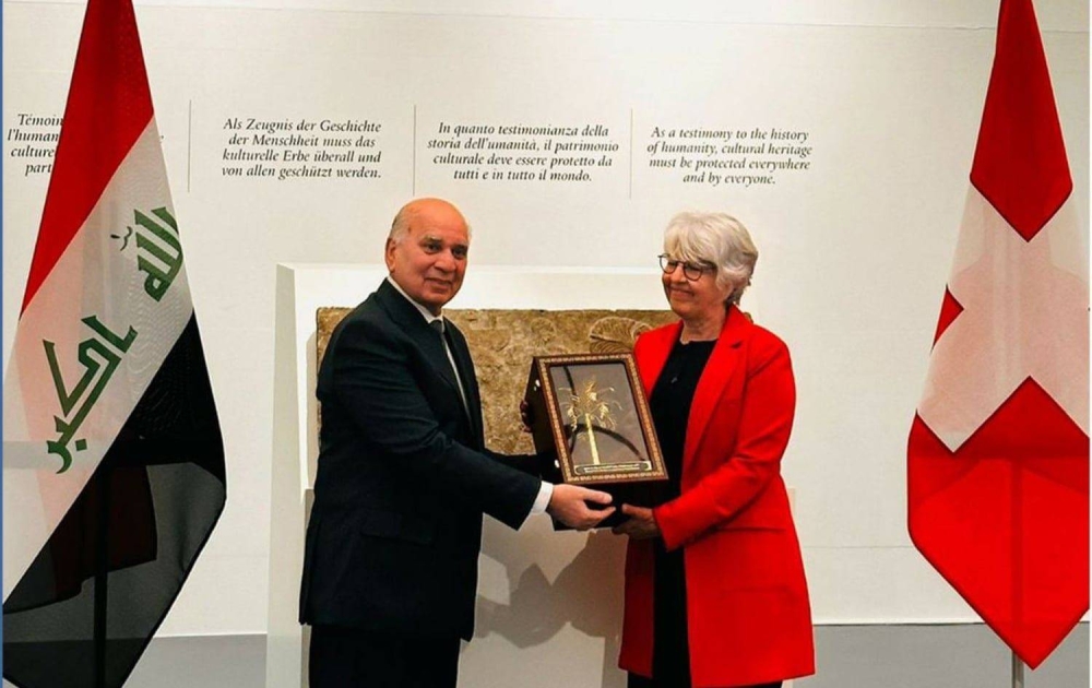 وقالت الوزارة في بيان إن وزير الخارجية فؤاد حسين تسلم ثلاث قطع أثرية عراقية «قيمة جداً» تعود إلى الحضارة الآشورية القديمة، من وزيرة الشؤون الداخلية السويسرية إليزابيث بوم شانيدر.