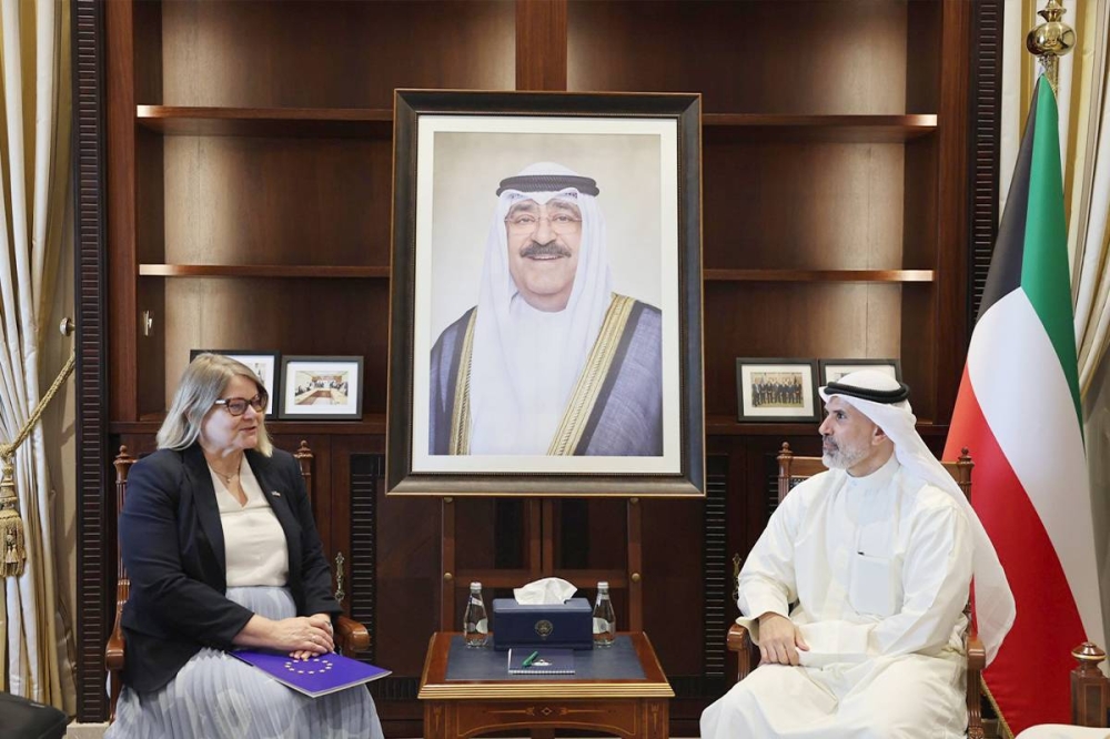 كما استقبل نائب وزير الخارجية سفيرة الاتحاد الأوروبي لدى دولة الكويت آن كويستينن حيث تم بحث سبل توطيد علاقات الشراكة والتعاون بين الجانبين.