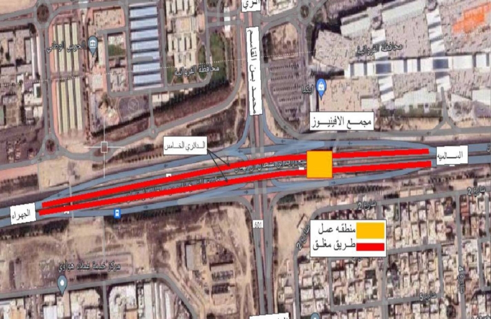 أعلنت الهيئة العامة للطرق والنقل البري، بالتعاون مع الإدارة العامة للمرور عن تحويل مؤقت لطريق الدائري الخامس، بالإتجاهين «تقاطع الخامس مع شارع بن القاسم»، من صباح الثلاثاء القادم حتى صباح يوم الخميس 30 الجاري من الساعة 2 صباحاً حتى الساعة 5 صباحاً.
