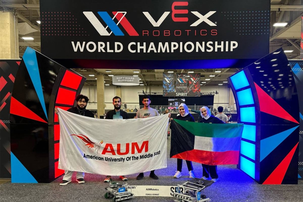 فاز مجموعة من طلبة كلية الهندسة والتكنولوجيا في جامعة الشرق الأوسط الأميركية (AUM) بالمركز الـ 16 عالميًا في مسابقة الروبوتات VEX في مجموعة Spirit، التي أُقيمت على مستوى العالم في دالاس بالولايات المتحدة الأميركية ليتأهلوا بذلك للدور الـ 16 المؤهِّل للنهائيات وذلك بعد ان فازوا في مسابقة الكويت الوطنية للروبوتات 2024، ومثلوا الكويت عالمياً. وقد شهدت مسابقة هذا العام مشاركة آلاف الطلبة المتنافسين ضمن أكثر من 1800 فريق حول العالم.