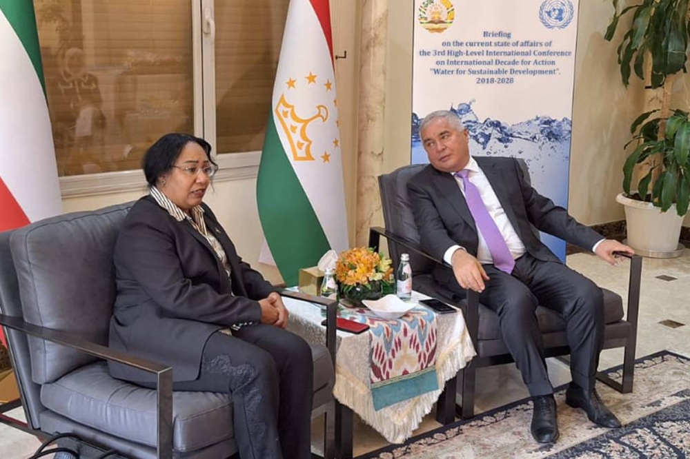 كما أشاد سفير طاجيكستان «بالدور الدؤوب والممنهج الذي تؤديه الكويت في تحقيق أهداف التنمية المستدامة على المستويات الوطنية والإقليمية والدولية»، موضحاً أن «الكويت لها مشاركة فعالة وحضور متميز في كل المؤتمرات والأحداث التي تقيمها طاجيكستان في إطار المبادرات المائية ومسار دوشنبه للمياه، ونتطلع إلى حضور الكويت على مستوى رفيع في مؤتمر دوشنبه القادم، وسيكون لدولة الكويت دور بارز في إنجاح هذا المؤتمر»، مشيراً من ناحية أخرى إلى وجود برنامج لنقل المياه من طاجيكستان إلى دول الخليج وبعض الدول الاخرى التي تعاني نقصا بالمياه.