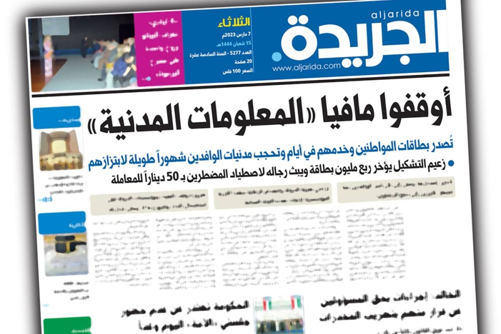 بعد حملة شنتها «الجريدة» على مافيا البطاقات المدنية التي تسببت في تعمد تعطيل صرفها للوافدين، لاستغلال حاجتهم وتسريع استخراجها لهم مقابل مبالغ مالية، أيدت محكمة التمييز الجزائية حكم محكمة الاستئناف بحبس مواطن يعمل رئيس قسم بالهيئة العامة للمعلومات المدنية، 5 سنوات مع الشغل والنفاذ، وتغريمه 212 ألف دينار، وعزله من الوظيفة، بعد ثبوت تسلمه 20 ديناراً رشوة عن صرف كل بطاقة للوافدين.