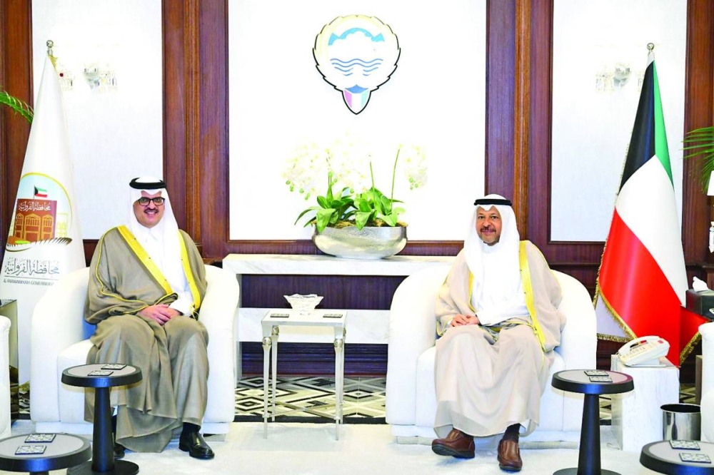 استقبل محافظ الفروانية، الشيخ عذبي الناصر، في مكتبه بديوان المحافظة صباح اليوم، سفير خادم الحرمين الشريفين لدى الكويت، الأمير سلطان بن سعد، وذلك لتقديم التهنئة له بمناسبة نيله الثقة السامية.