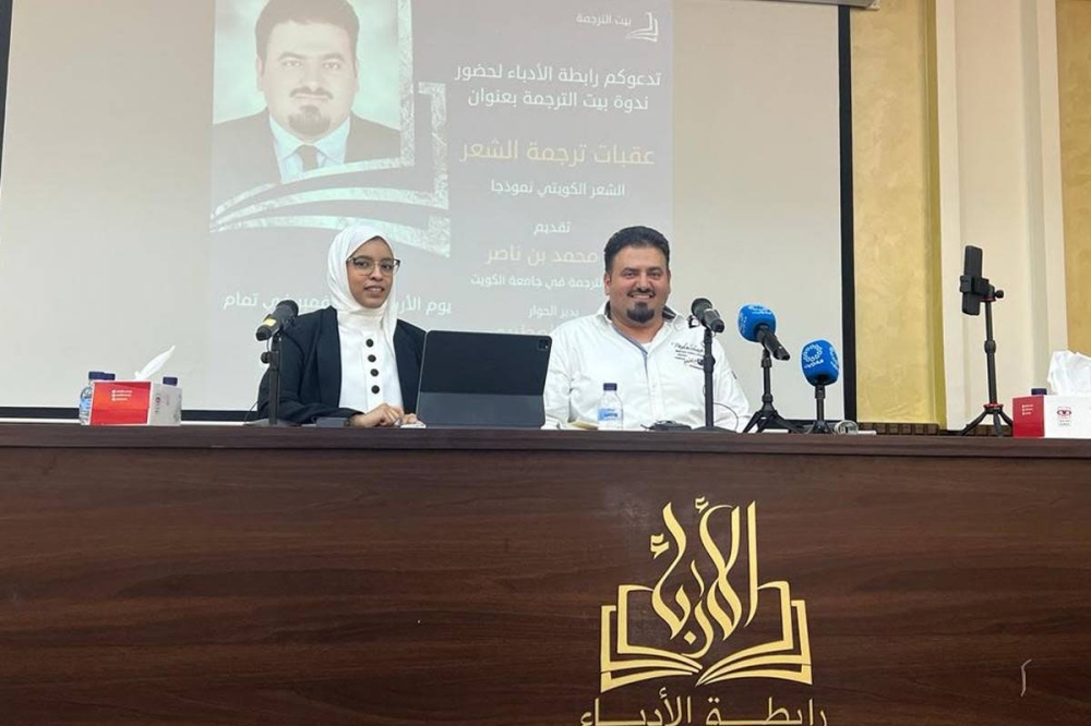 أقام بيت الترجمة في رابطة الأدباء الكويتيين ندوة بعنوان «عقبات ترجمة الشعر: الشعر الكويتي نموذجاً»، تقديم أستاذ الترجمة في جامعة الكويت د. محمد بن ناصر، وأدارت الحوار سلمى المطيري.
