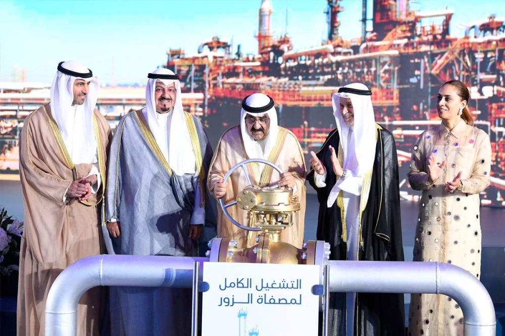 برعاية وحضور سمو أمير البلاد الشيخ مشعل الأحمد، أقيمت صباح اليوم الاحتفالية الرسمية للتشغيل الكامل لمصفاة الزور بمجمع الزور النفطي.