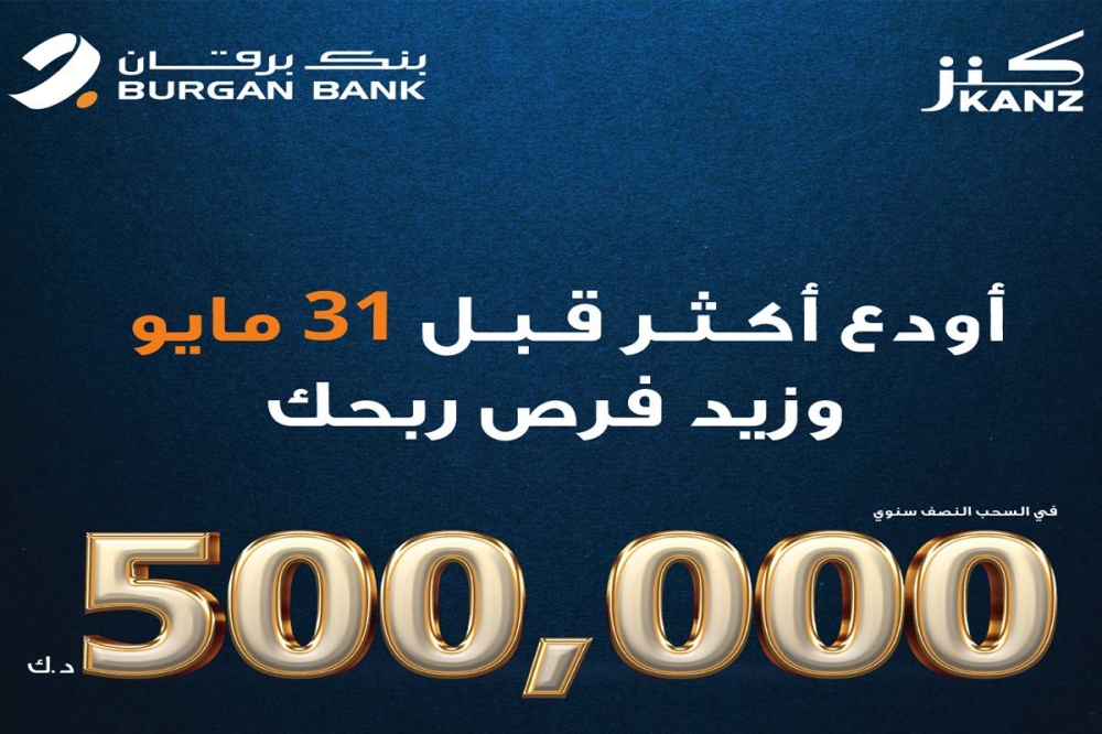 أعلن بنك برقان أن غداً يعتبر آخر موعد لدخول سحب حساب كنز نصف السنوي، والمؤهل للفوز بجائزة نقدية بقيمة 500 الف دينار، حيث شجع عملاءه الحاليين والمحتملين على المشاركة في السحب، في إطار جهوده الحثيثة لنشر ثقافة الادخار في الكويت. ويتماشى حساب كنز، الذي خُصص للتوفير وإجراء السحوبات، مع برنامج بنك برقان الشامل للمسؤولية الاجتماعية، والتزاماً منه بنشر الثقافة المالية والتوعية المصرفية في المجتمع الكويتي.